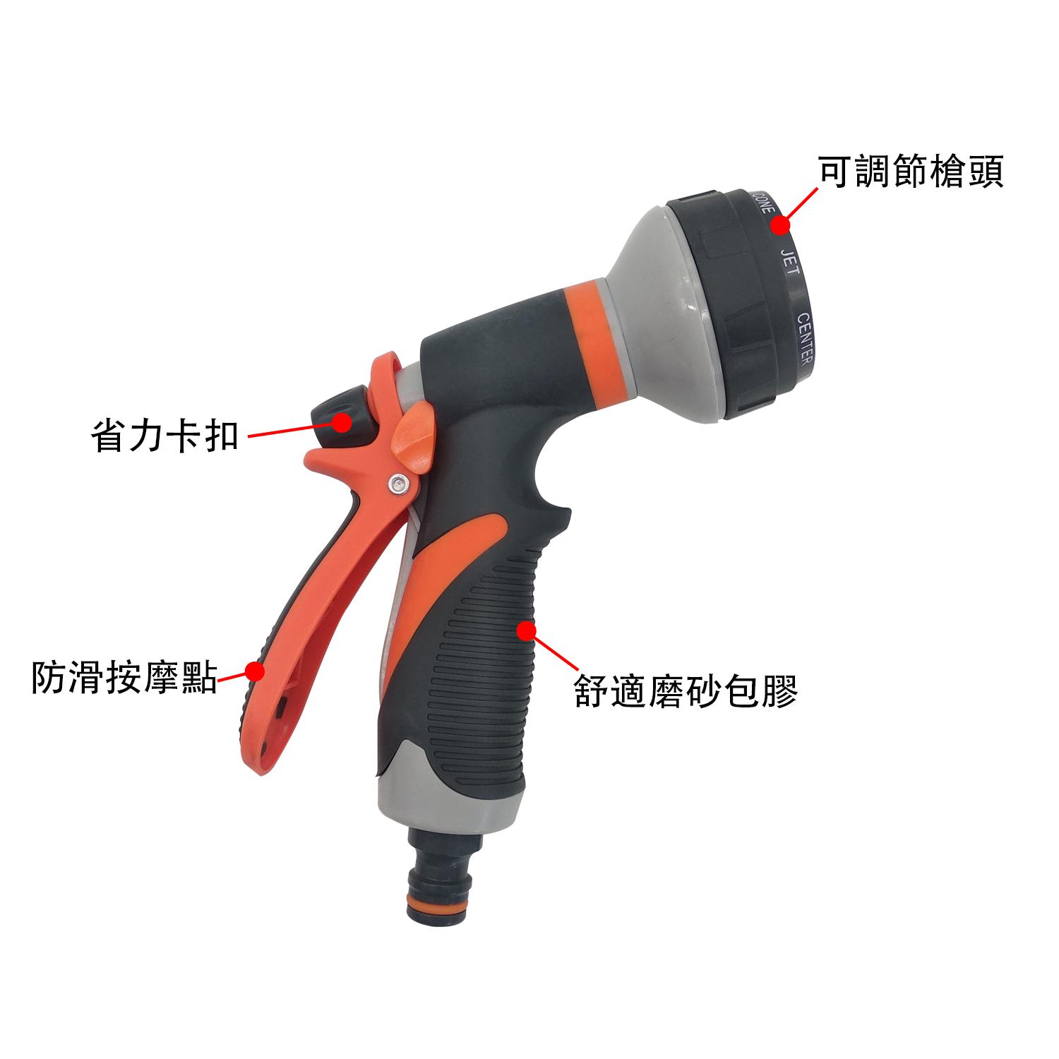 --- 旋轉槍嘴,可射出多種水花,適合不同的用途>