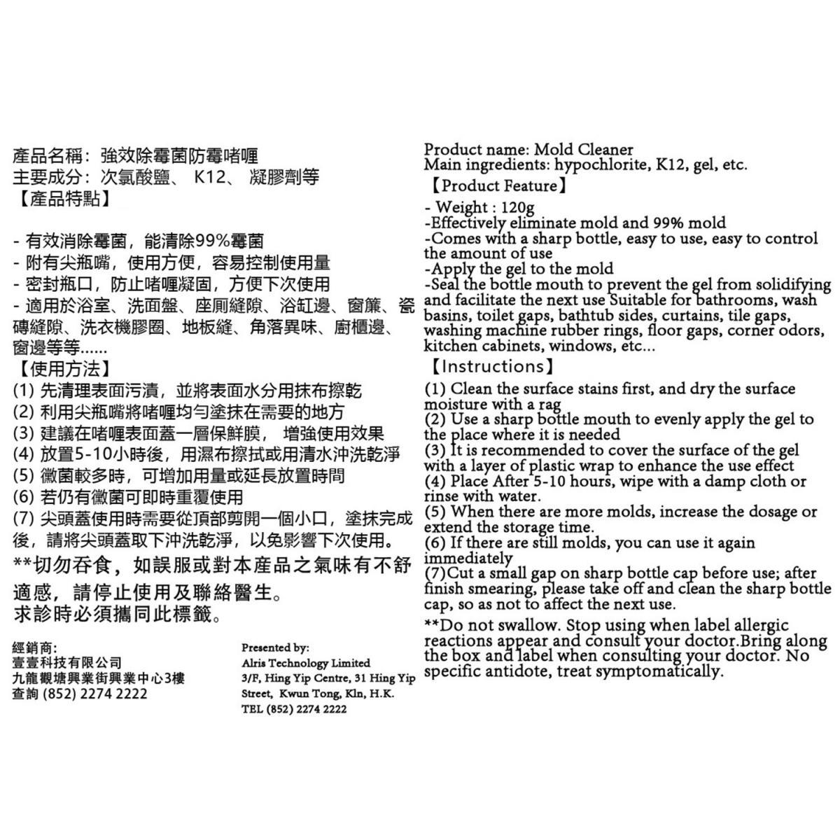 名稱:強效除霉菌防霉啫喱(VHOME-MOLD-150ML)