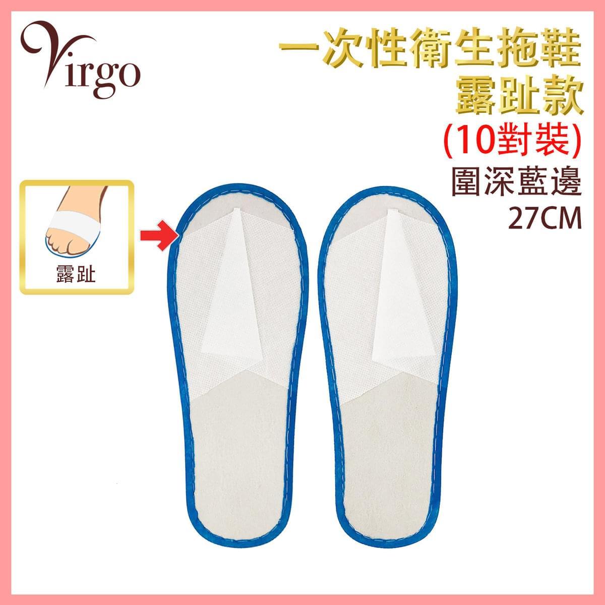 名稱 : 藍邊露趾款均碼Free size一次性拖鞋(10對裝)(VHOME-SLIPPER-27CM-OPEN)
