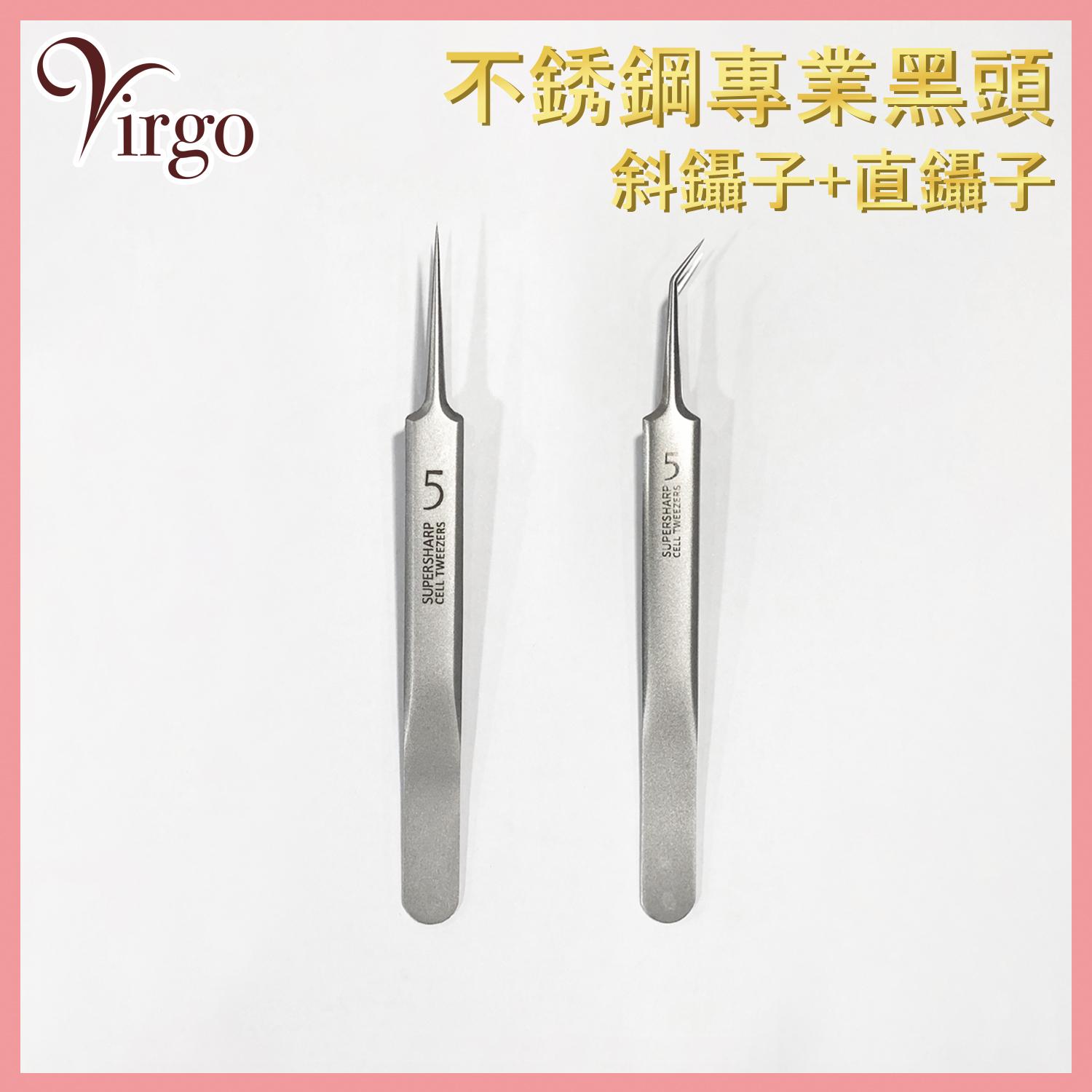 名稱 : (2件裝)不銹鋼專業黑頭斜鑷子+直鑷子 (VHOME-STEEL-TS02)