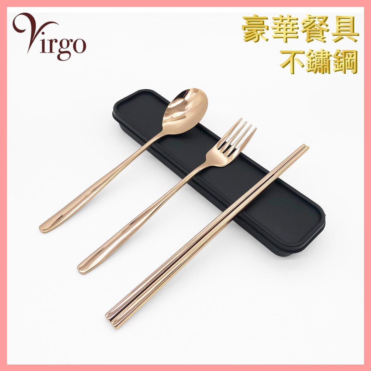 玫瑰金304不銹鋼餐具套裝, 環保餐具自攜學生上班用餐筷子匙羹叉子禮物送禮自用(VHOME-TABLEWARE-304-RD)