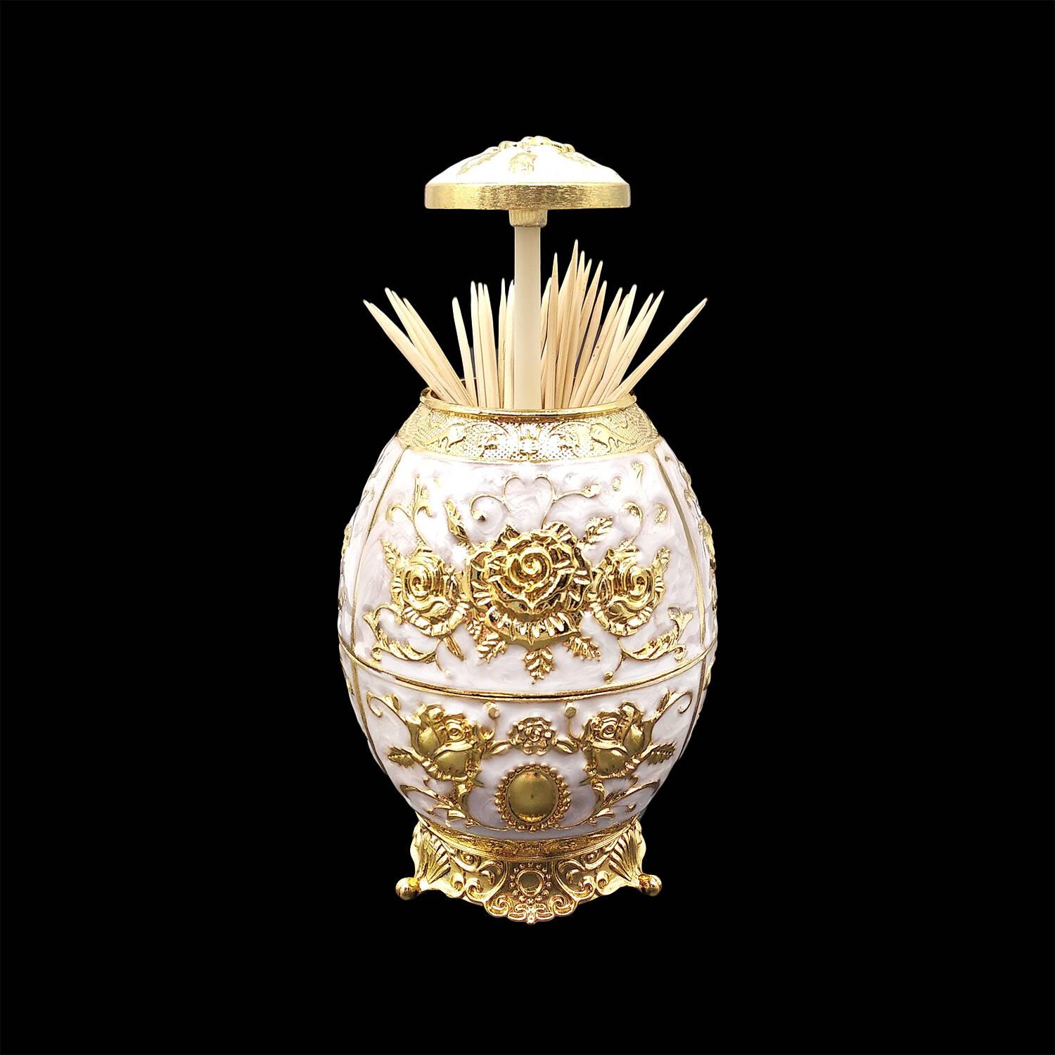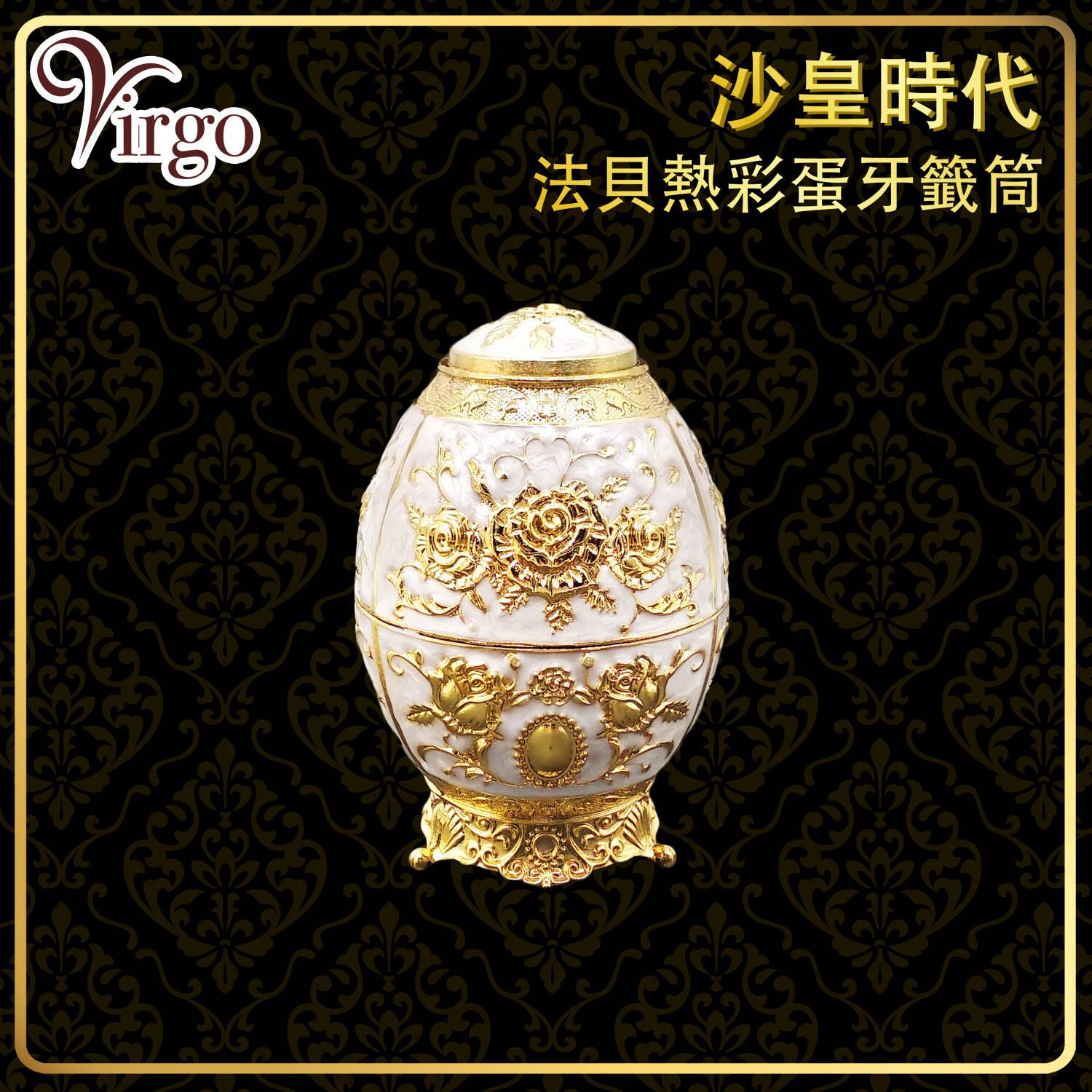 名稱 : 歐式優雅牙籤筒(VHOME-TP-HOLDER-GOLD) 材質 : 環保鋅合金 呎吋 : 高11CM / 闊7.5CM 特點 : --- 立體浮雕設計,盡顯高雅 --- 鋅合金材質,耐碰耐用 --- 表面加入滴膠原素,防褪色 --- 一按彈開,方便衛生 --- 底部平穩圓滑,不易摔倒、不傷枱面 合金材料,溶色部分或會有少許不平均的情況出現