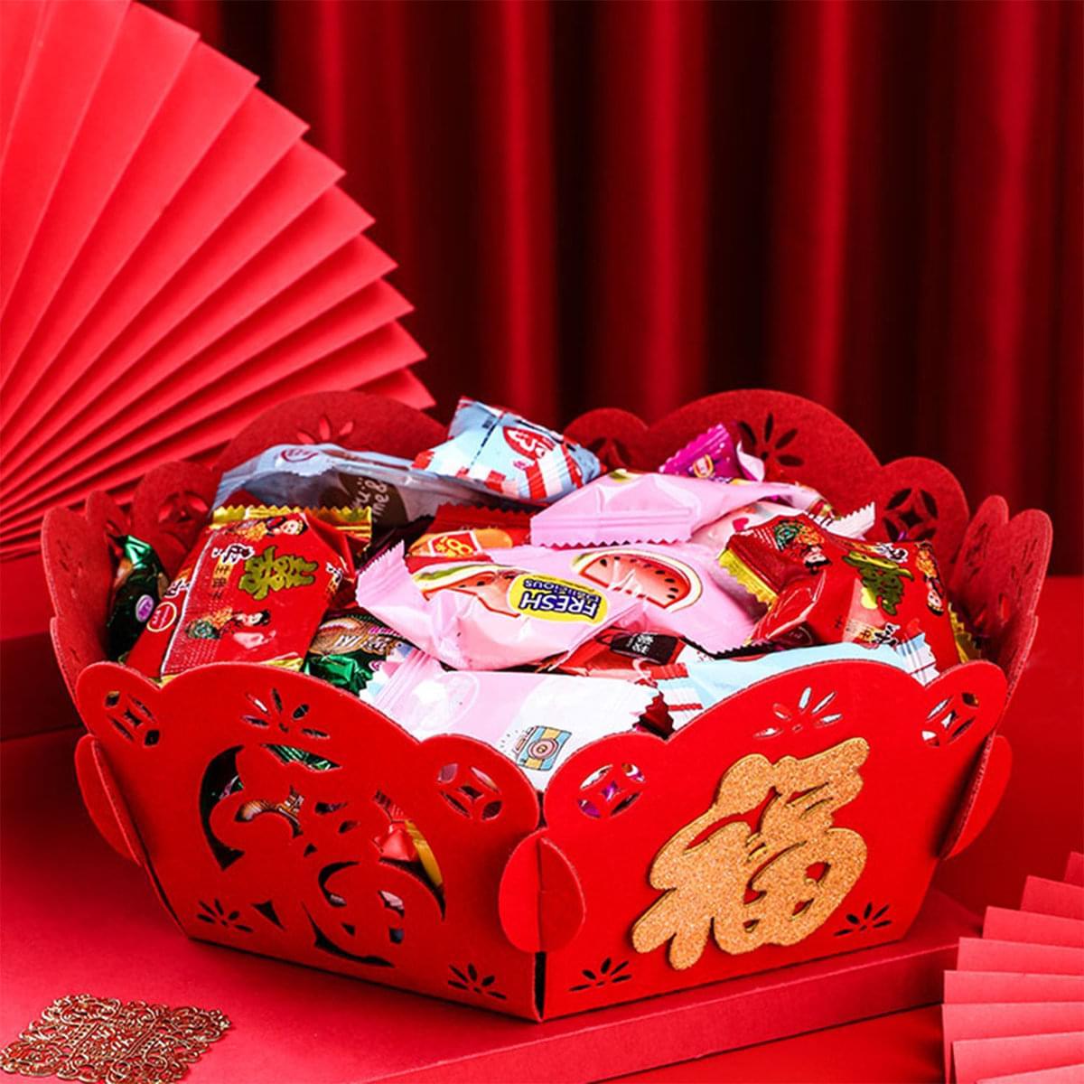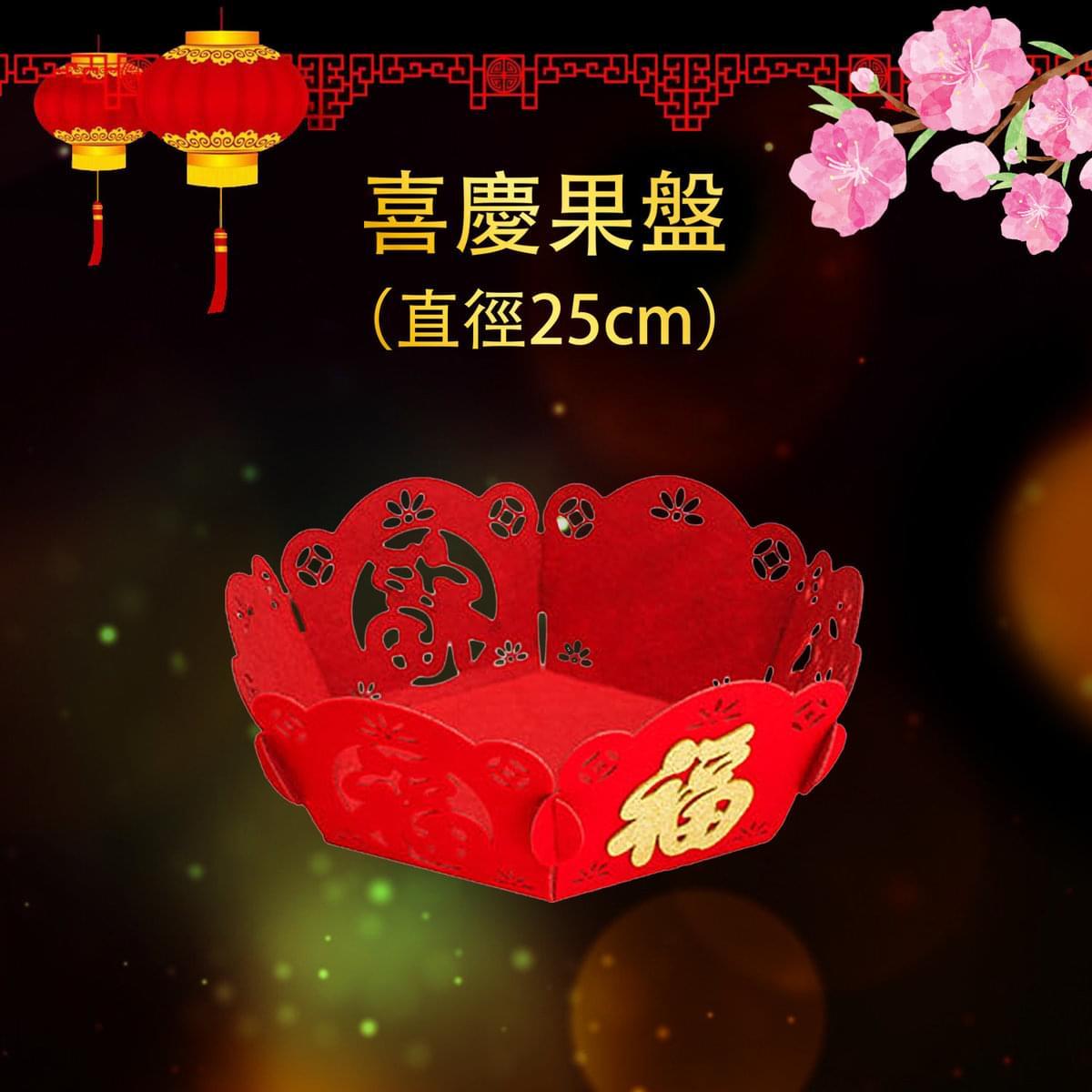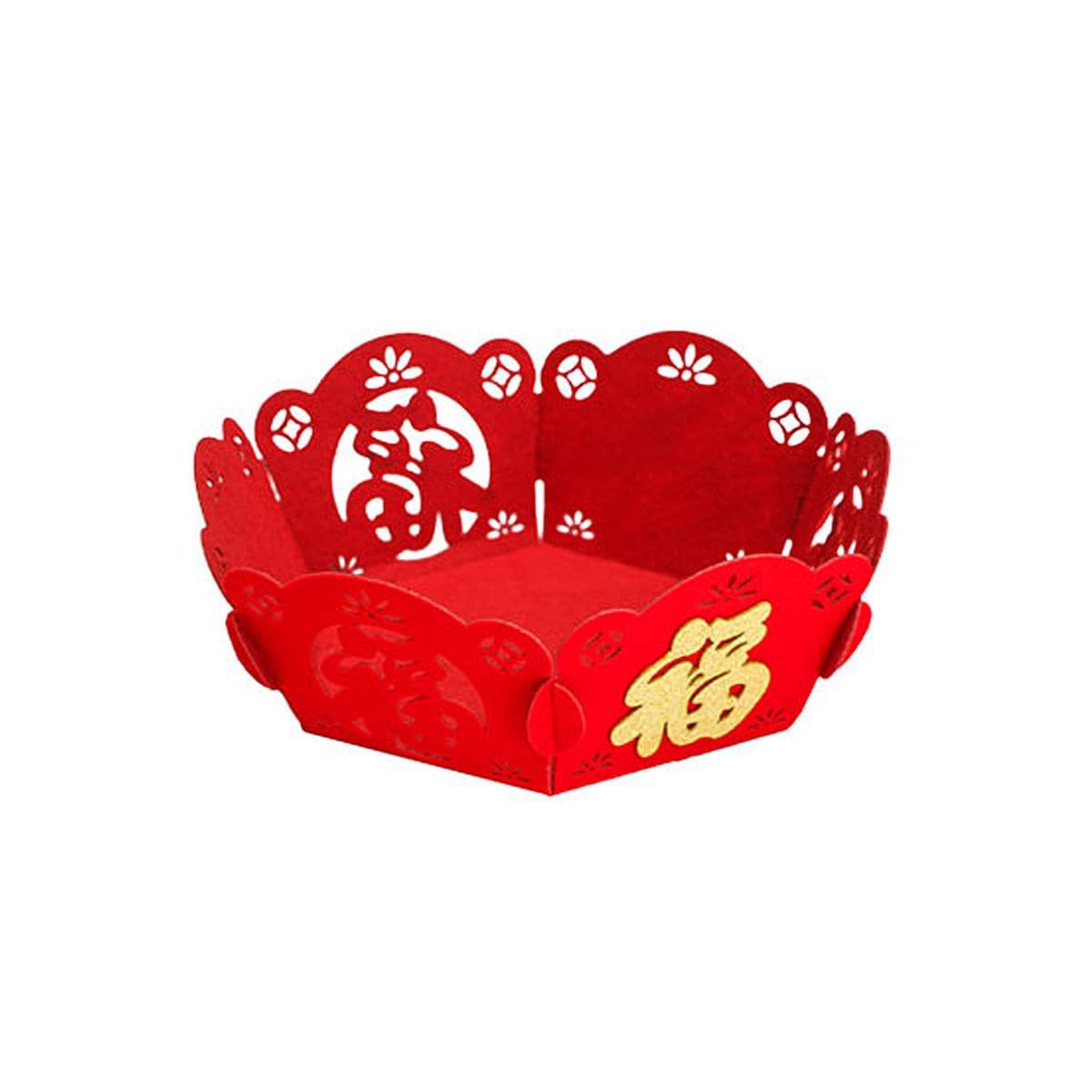 名稱 :25cm燙金福字喜慶果盤(VNY-BOX-25CM) 材質 : 無紡布 呎吋 : 摺疊後直徑25cm x 底部直徑17cm 特點 : --- 大紅顏色,增添喜慶感 --- 燙金福字,更顯高雅 --- 設計新穎,手工精細 --- 布質加厚,堅固耐用 --- 3D雕刻,圍邊齊整 --- 輕易拆開或摺疊 --- 六邊形設計,六六無窮 --- 可循