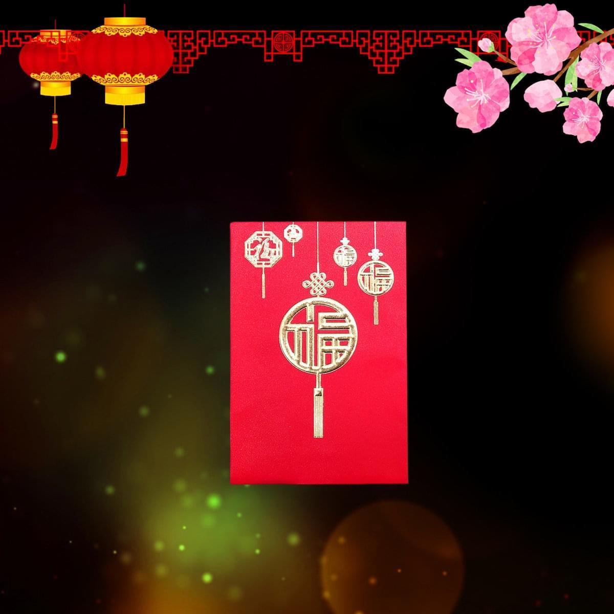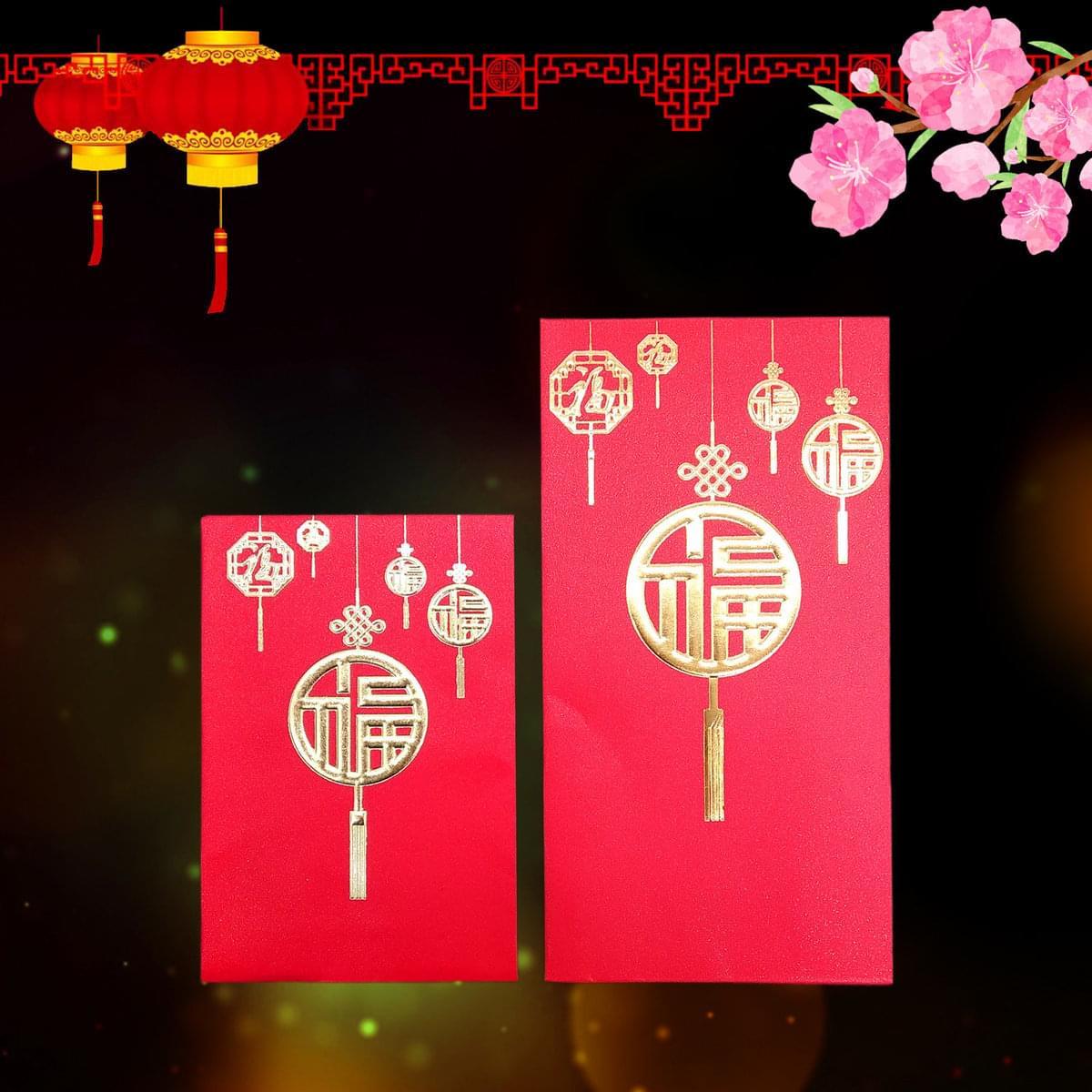 No.2 福字燈籠 (短封), 新年利是封红包派利是一千元紙幣利是封福字紅色喜慶增財增運燙金高雅貴氣大體利是封喜字結婚(VNY-RP-02)