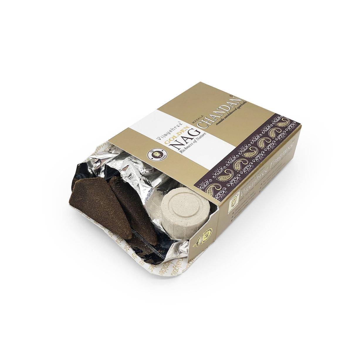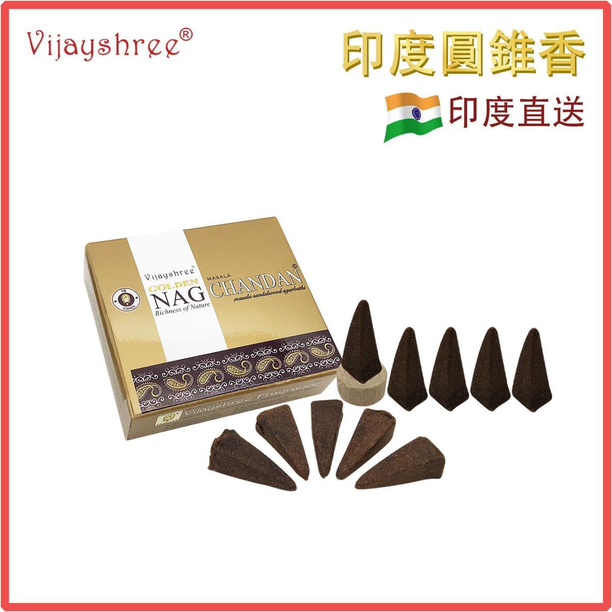 (10粒四方盒裝)CHANDAN印度檀香木味印度進口純天然手工制圓錐塔香香薰 瑜伽冥想專用錐形香薰粒 瑜珈塔香 錐粒香 錐形香 VS-CONE-GOLDEN-CHANDAN