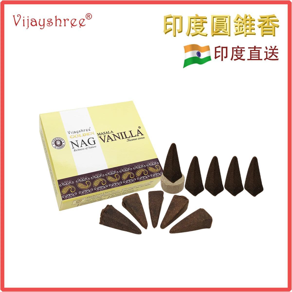 (10粒四方盒裝)VANILLA味印度進口純天然手工制圓錐塔香香薰 瑜伽冥想專用錐形香薰粒 瑜珈塔香 錐粒香 錐形香 VS-CONE-GOLDEN-VANILLA
