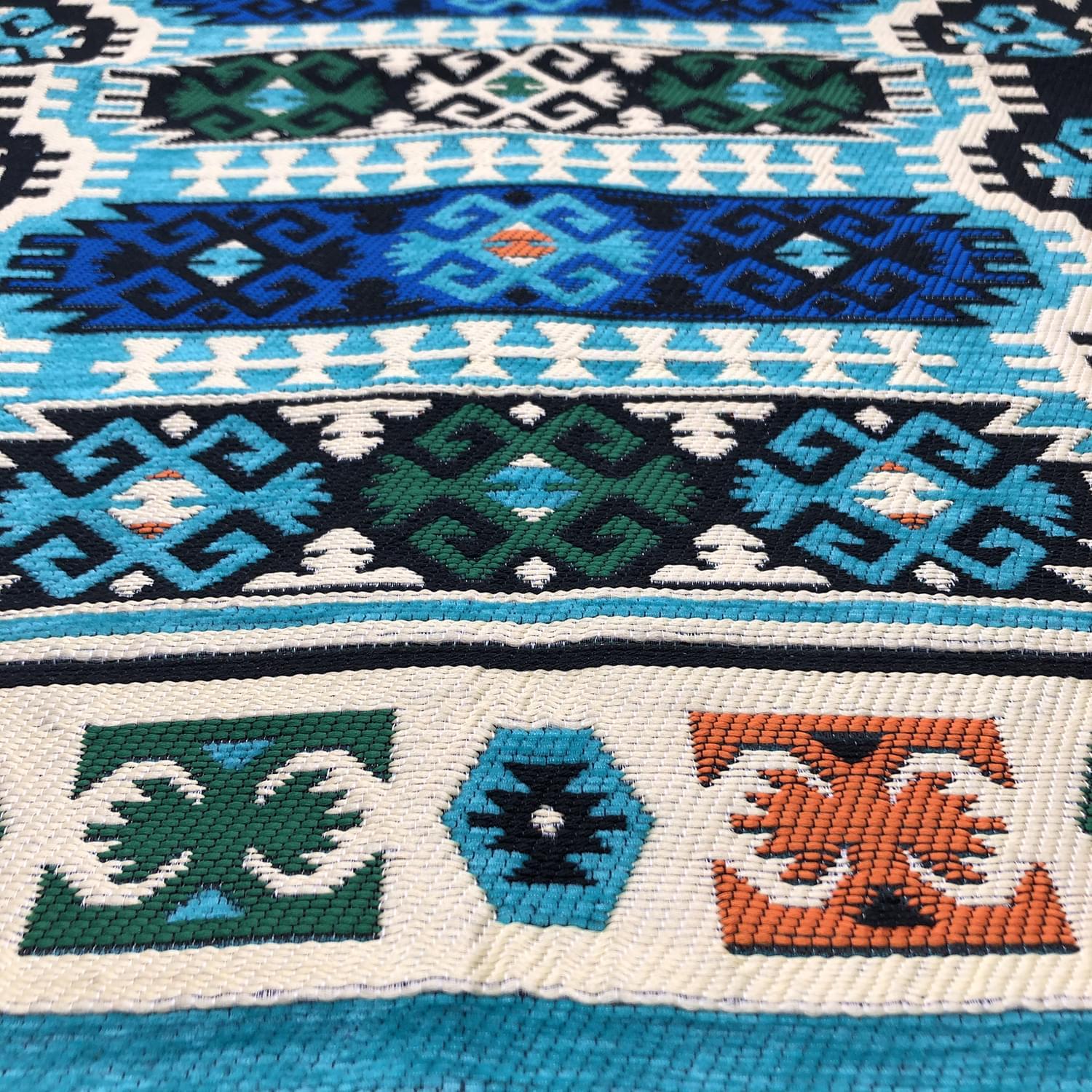 我們傳統土耳其工藝地毯有多款可選,請按選項選購: 由30%聚酯纖維,70%棉製成 傳統土耳其工藝產品 織物上有土耳其特式吉祥圖案 顏色:藍色 尺寸:60X90X0.3厘米 重量:650克