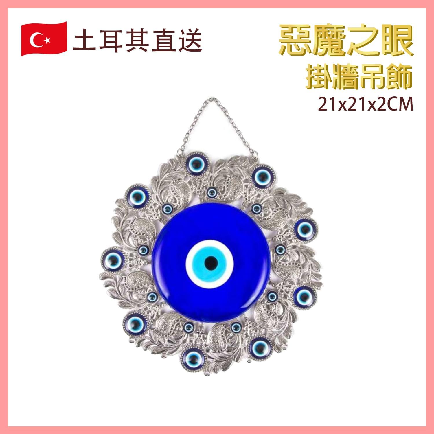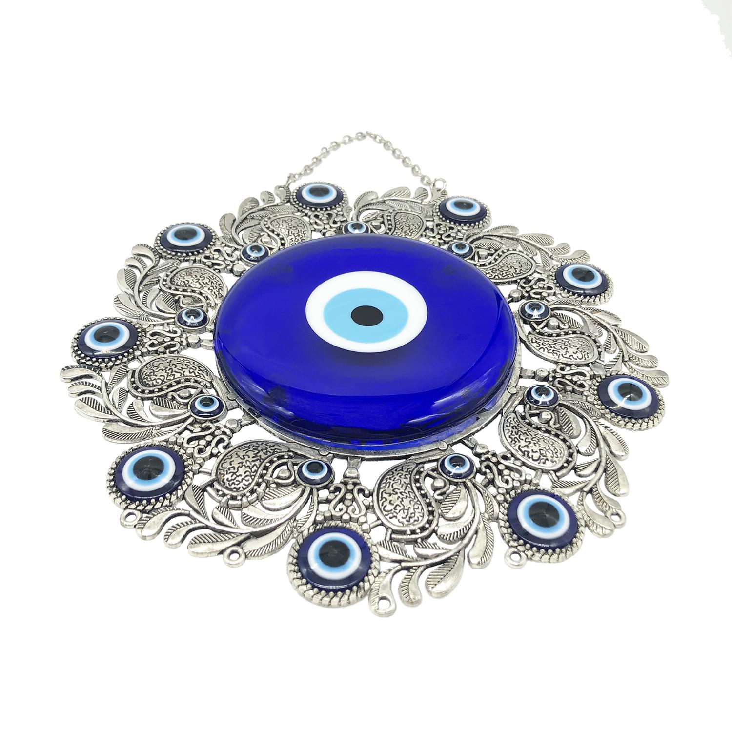 21厘米直徑圓形鑲銀花邊惡魔之眼掛牆吊飾