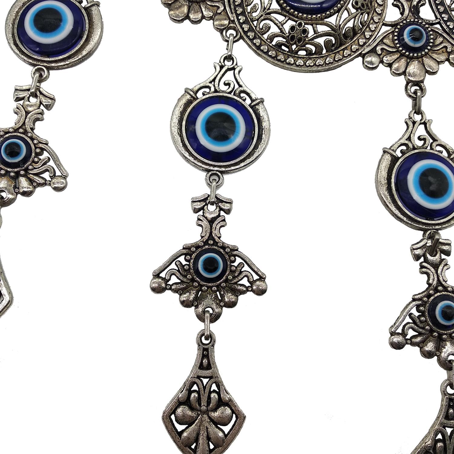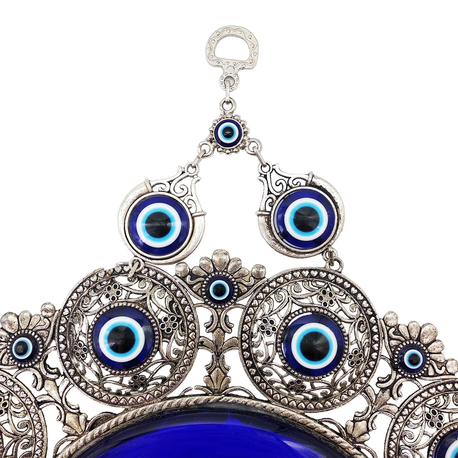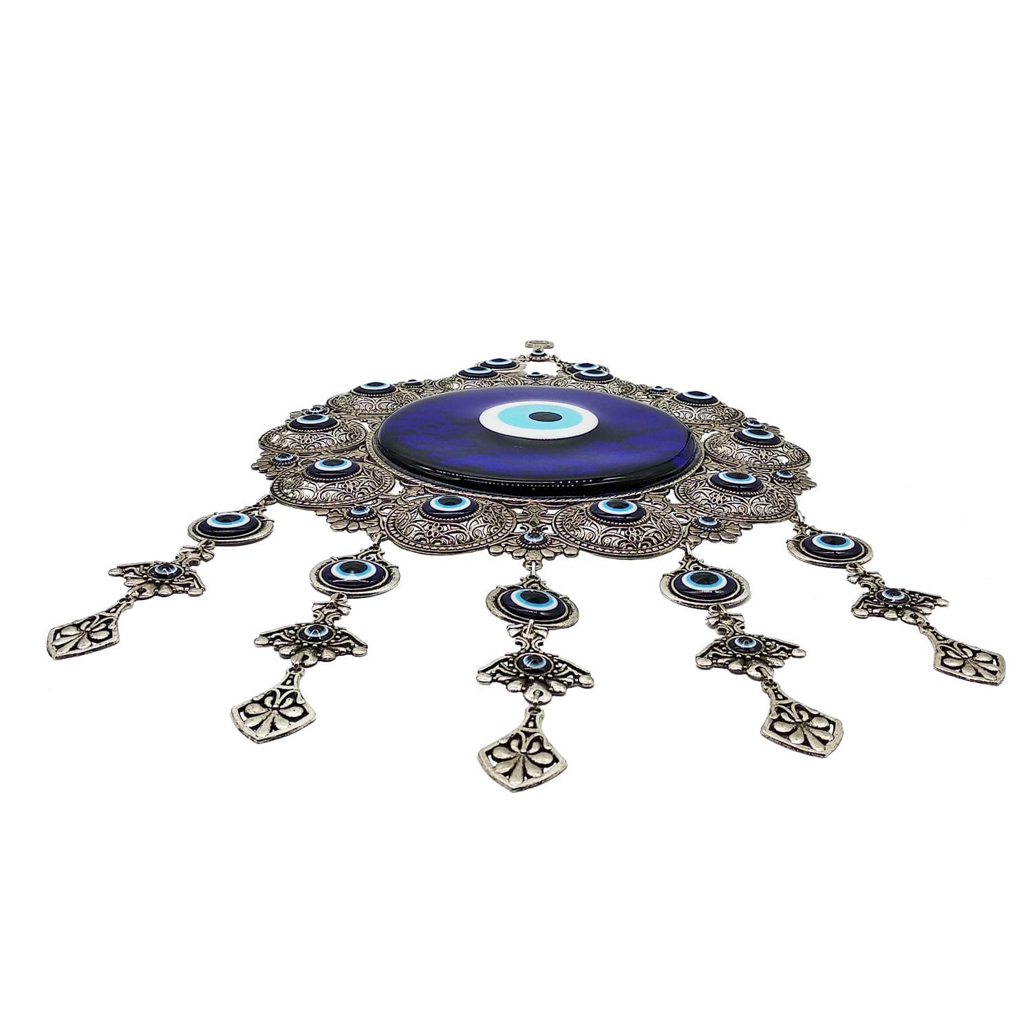 28厘米直徑圓形鑲銀花邊惡魔之眼掛牆吊飾