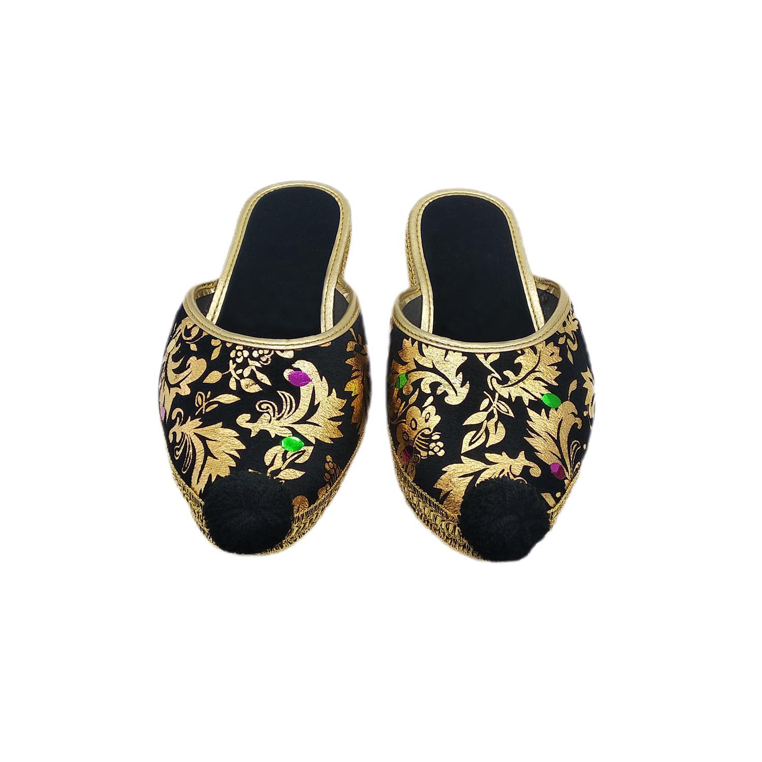 我們傳統土耳其工藝拖鞋有多款可選,請按選項選購: 傳統土耳其工藝拖鞋 末端有絨球 織物上有花樣 顏色:黑色 尺寸:26x10x4.5厘米 重量:140克 體積:1170立方厘米