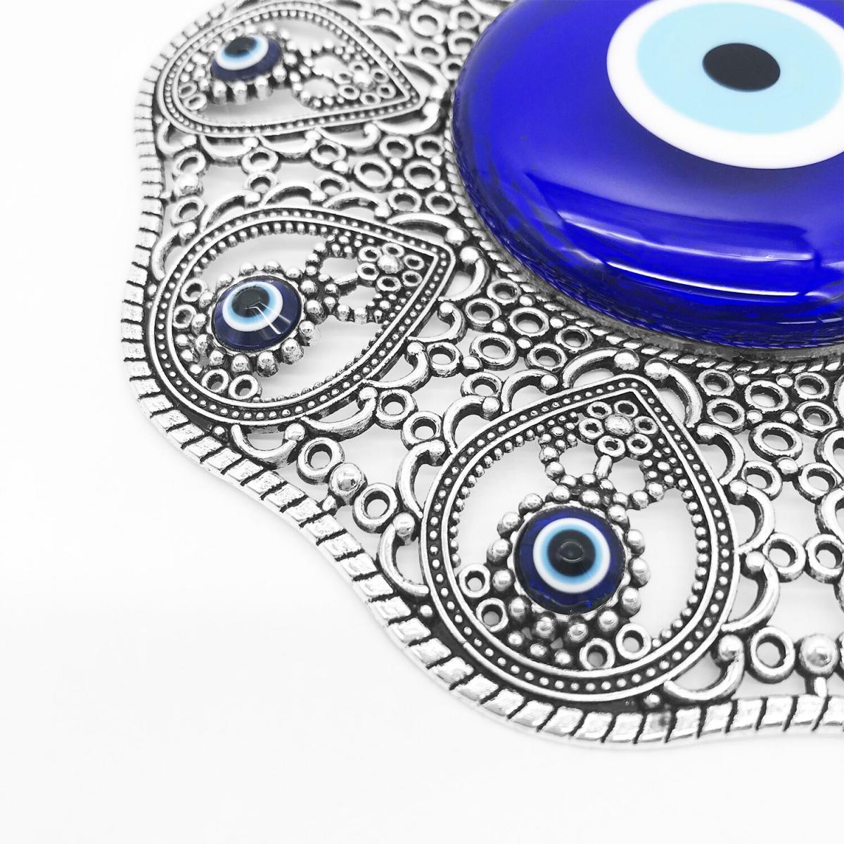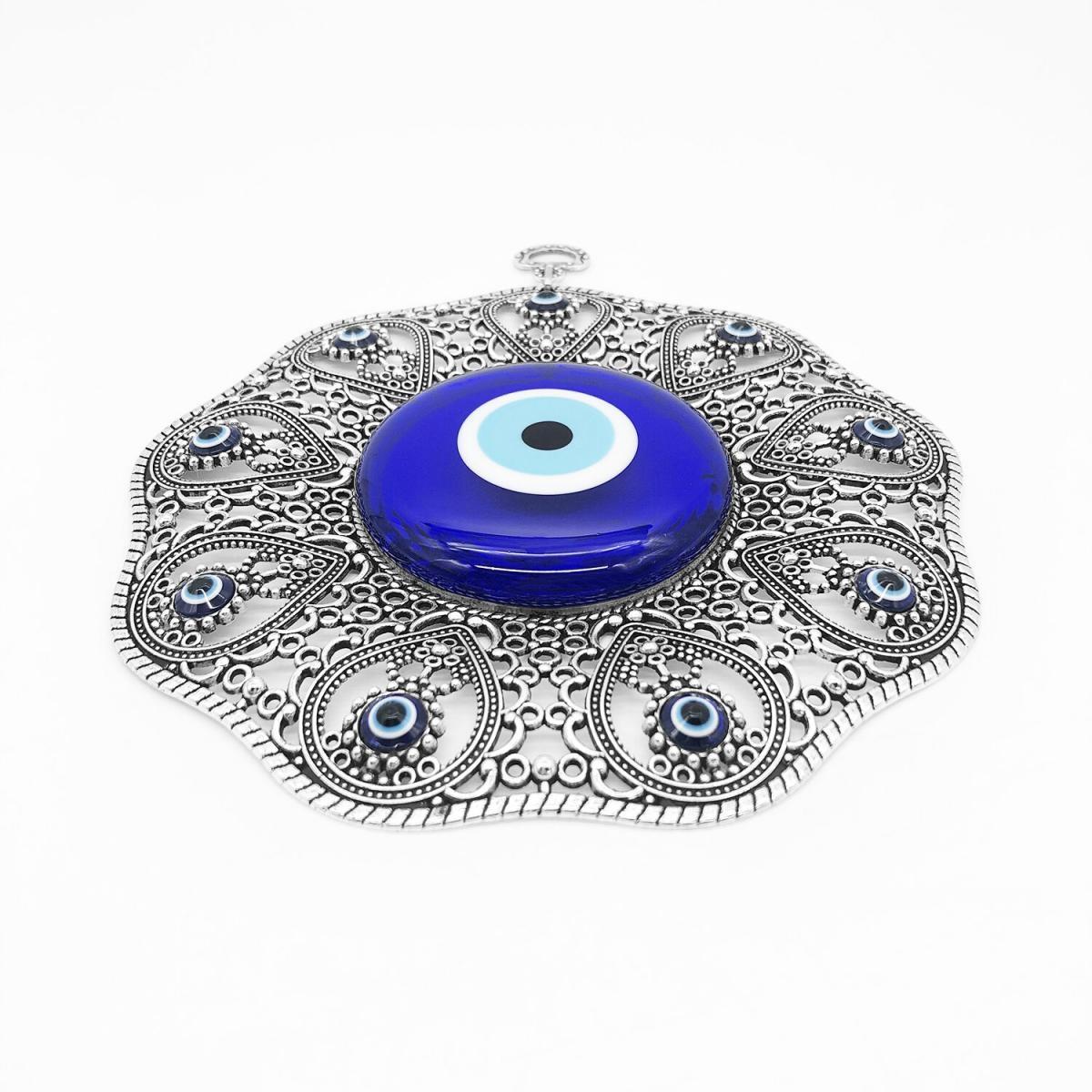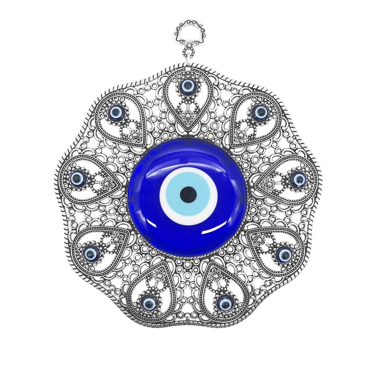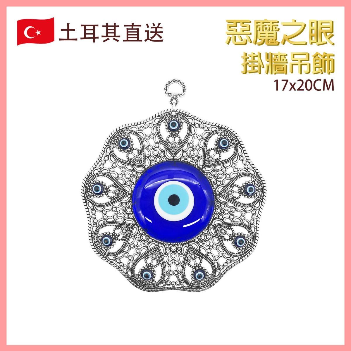 17厘米直徑圓形鑲銀花邊惡魔之眼掛牆吊飾