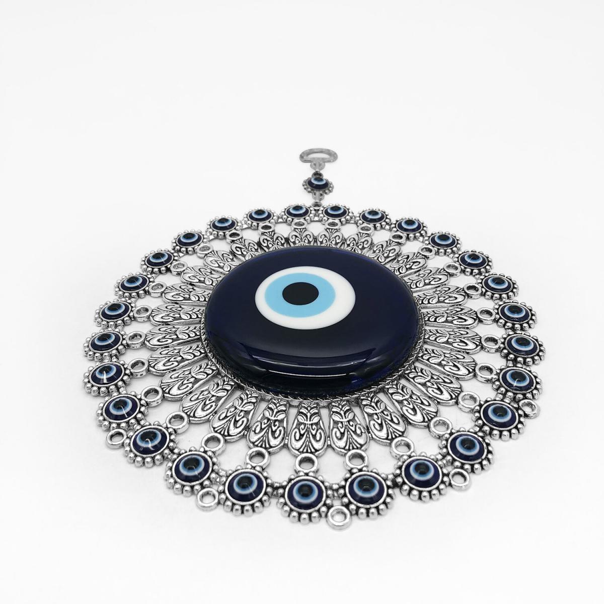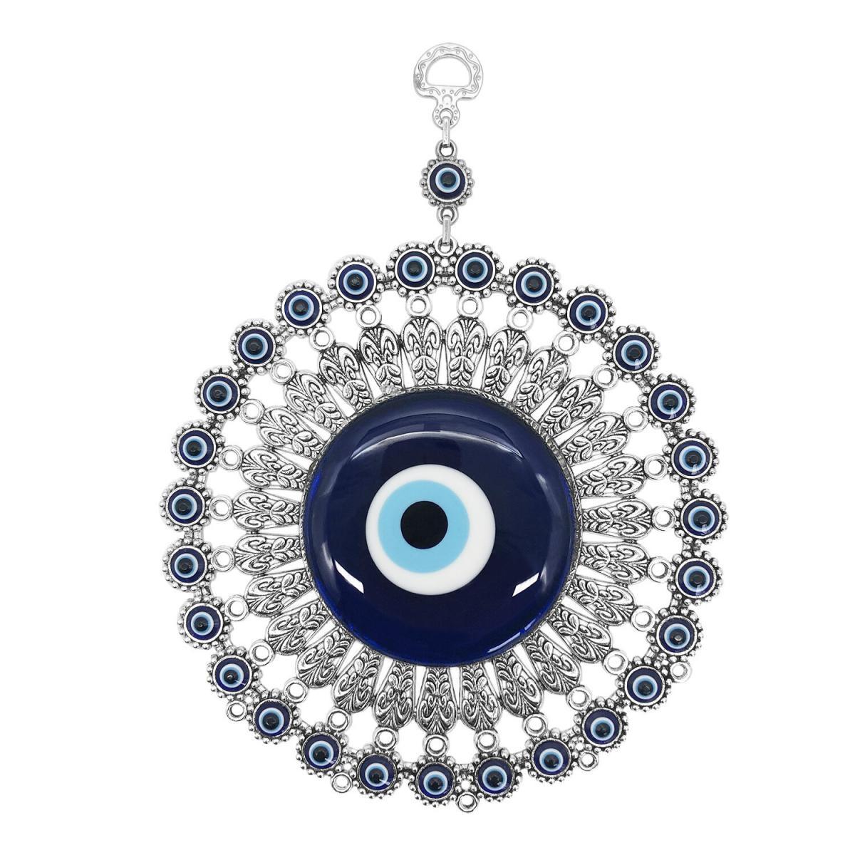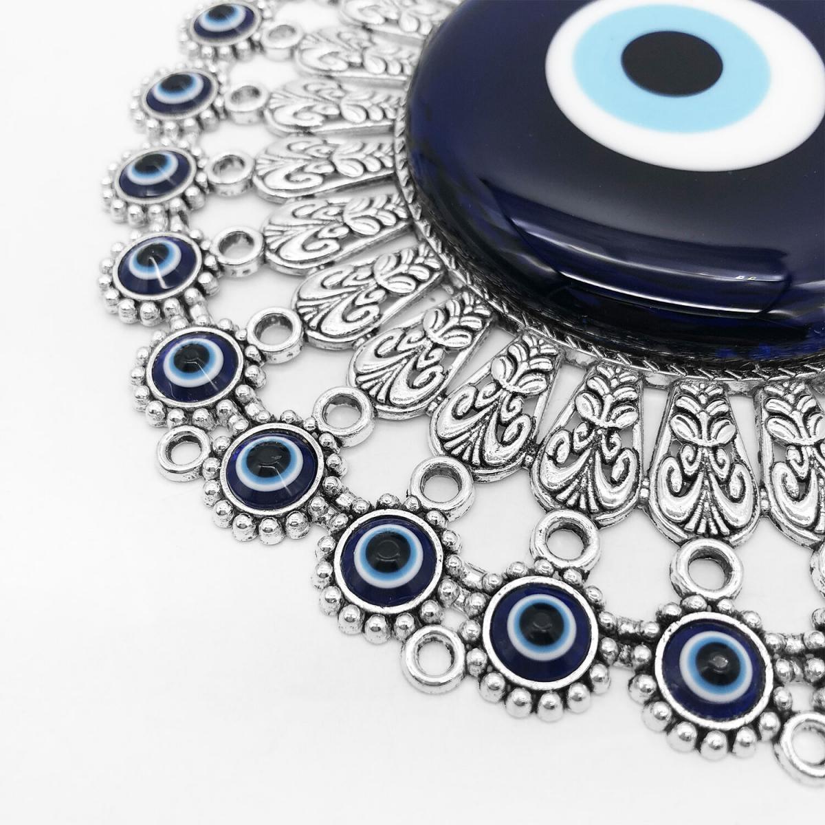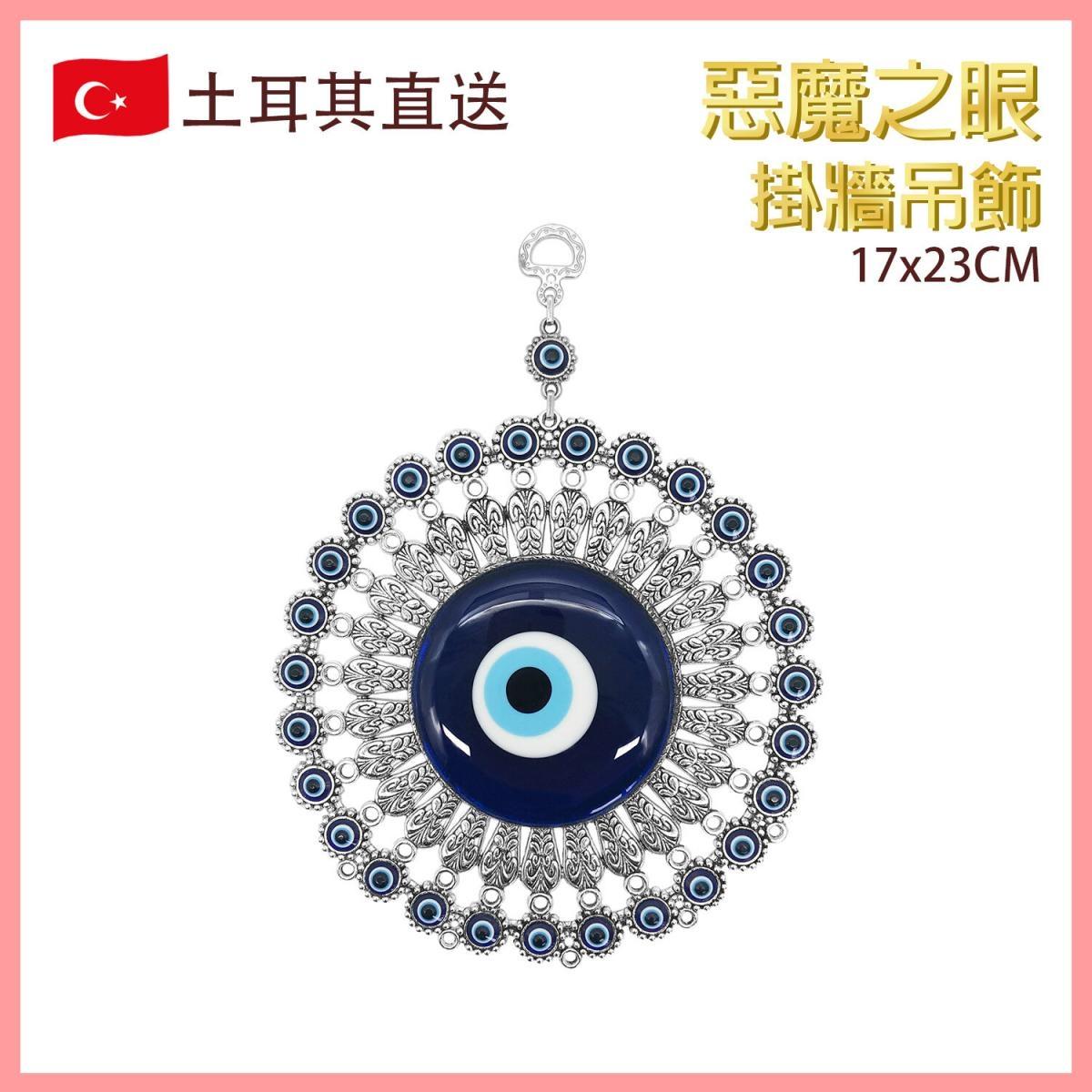 17厘米直徑圓形鑲銀花邊惡魔之眼掛牆吊飾
