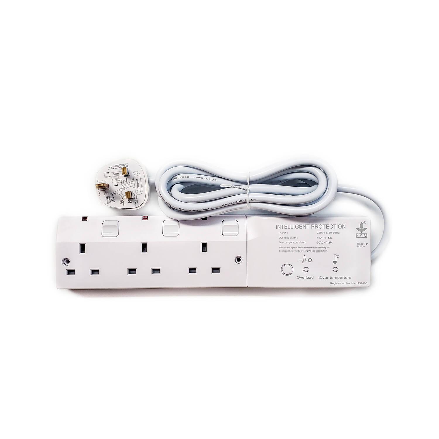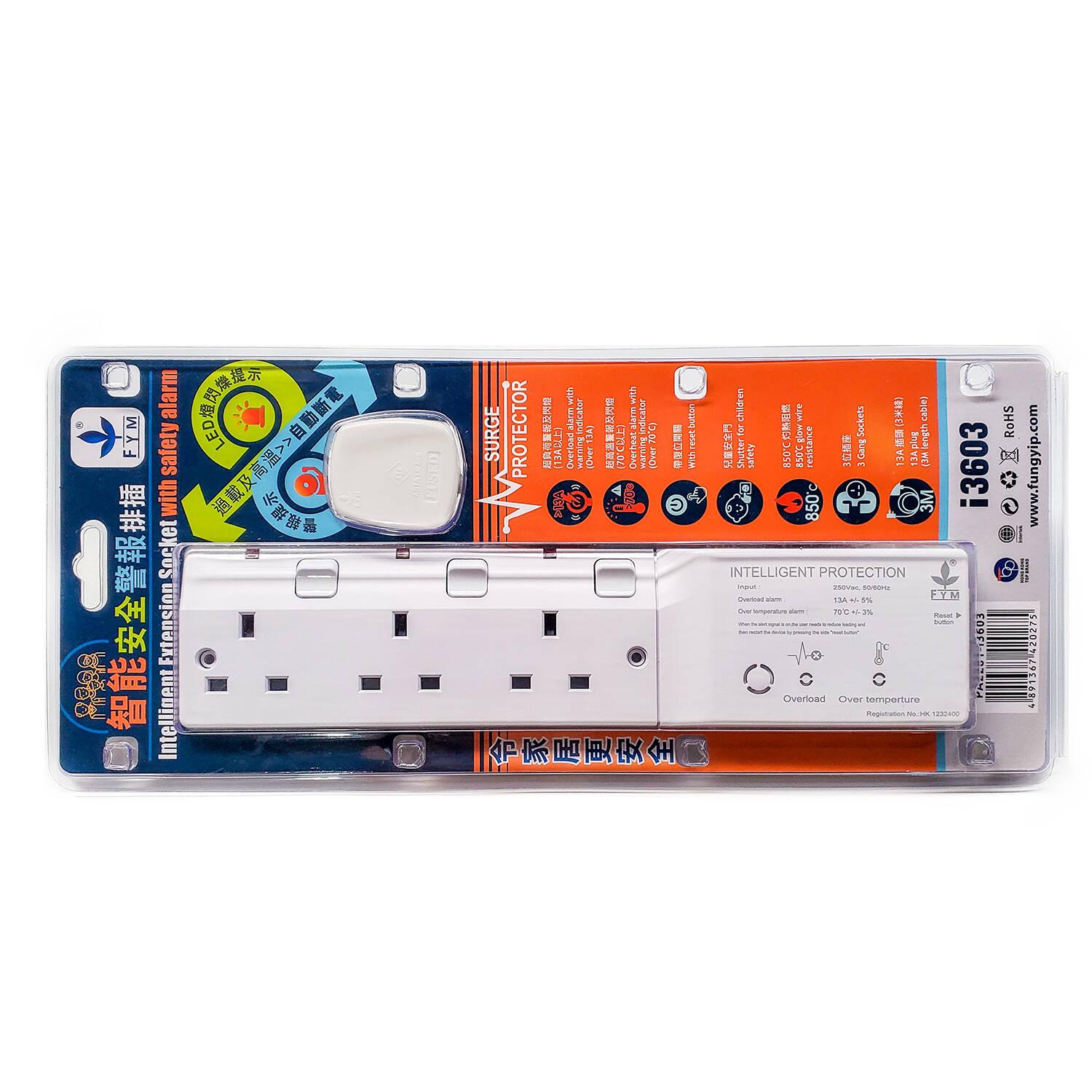 豊葉智能安全警報系列電源拖板(延長線排插排蘇),可讓您將2個至10個物品安全地插入一條拖板,內置智能安全警報器,過載及高溫自動斷電LED燈閃爍和警報提示,帶復位重置開關。當警報信號亮起或響起時,用戶必須減少排插上的負載,之後按下側面的"重置按鈕",將排插重新啟動。 該產品提供3米長的電纜,和帶防雷功能可保護寶貴的電氣設備免受脈衝的影響,並受到保護。