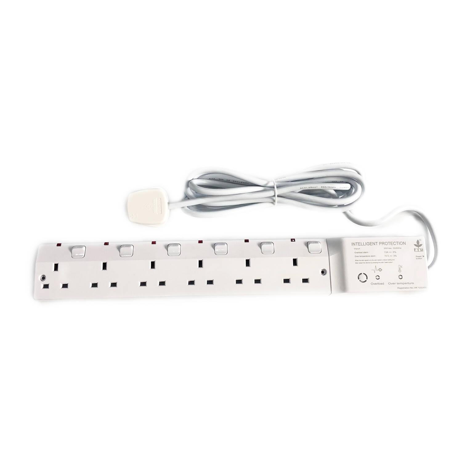 6位13A獨立LED開關3米線防雷智能安全警報拖板