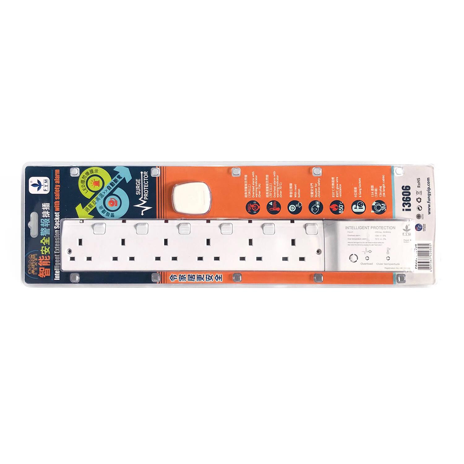 豊葉智能安全警報系列電源拖板(延長線排插排蘇),可讓您將2個至10個物品安全地插入一條拖板,內置智能安全警報器,過載及高溫自動斷電LED燈閃爍和警報提示,帶復位重置開關。當警報信號亮起或響起時,用戶必須減少排插上的負載,之後按下側面的"重置按鈕",將排插重新啟動。 該產品提供3米長的電纜,和帶防雷功能可保護寶貴的電氣設備免受脈衝的影響,並受到保護。
