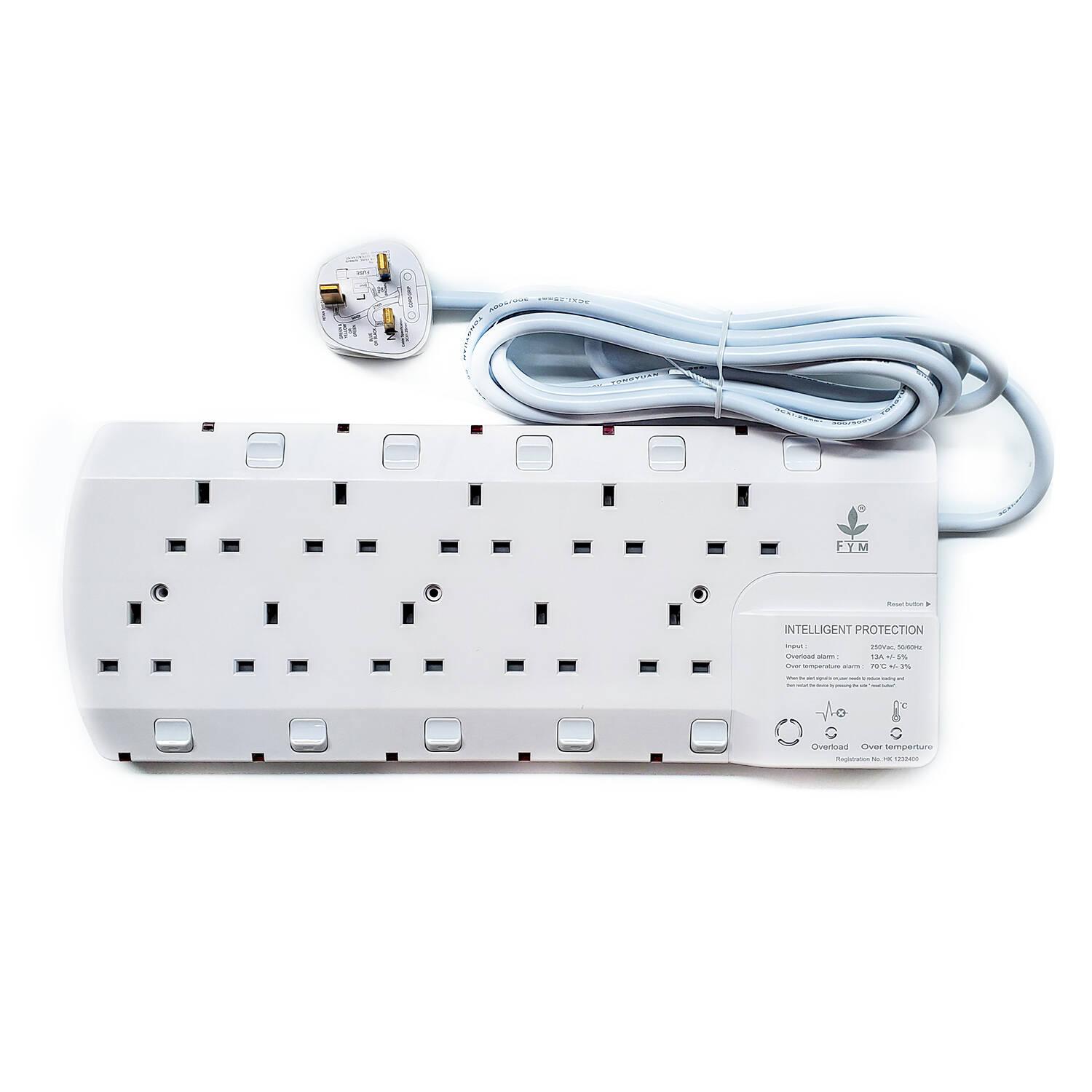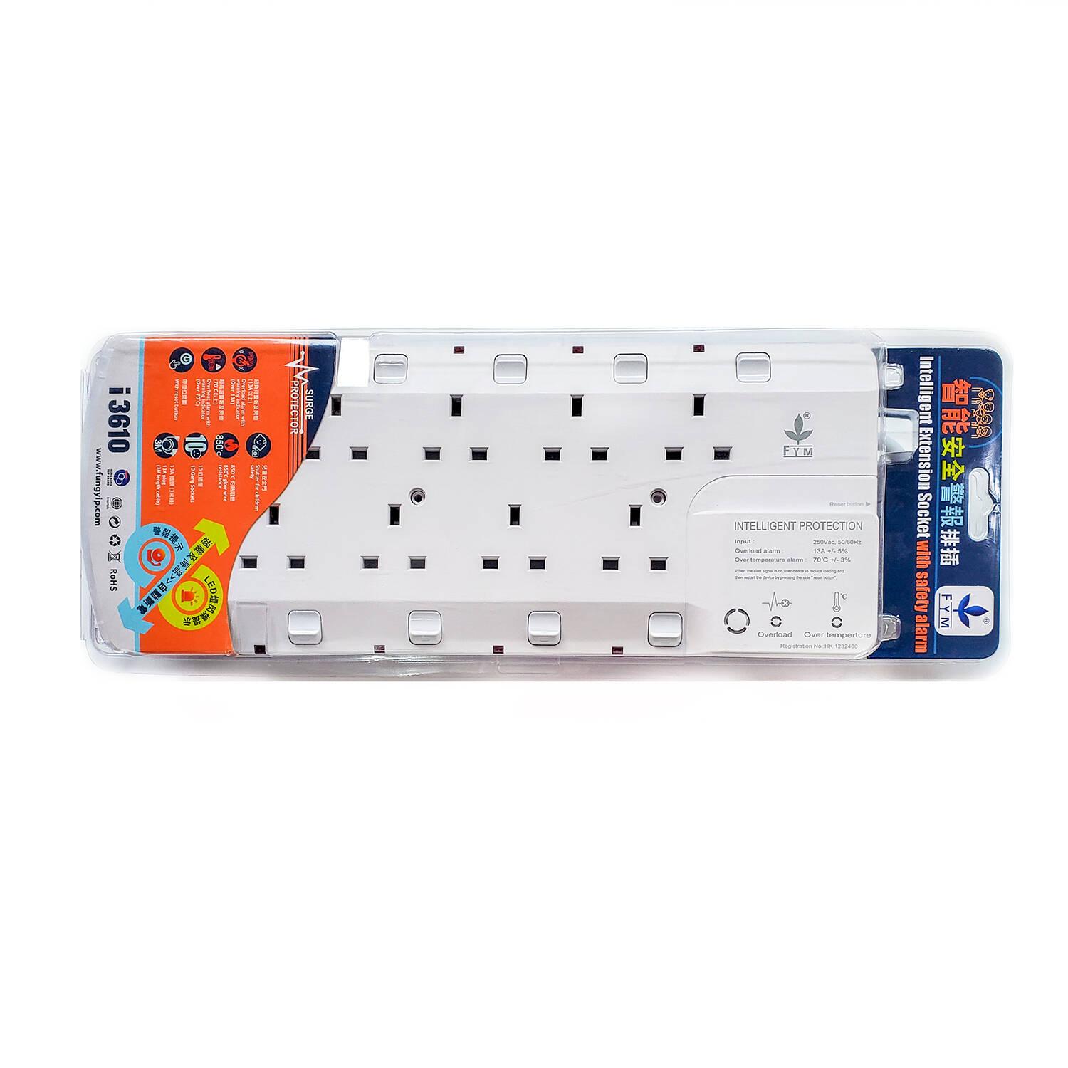 豊葉智能安全警報系列電源拖板(延長線排插排蘇),可讓您將2個至10個物品安全地插入一條拖板,內置智能安全警報器,過載及高溫自動斷電LED燈閃爍和警報提示,帶復位重置開關。當警報信號亮起或響起時,用戶必須減少排插上的負載,之後按下側面的"重置按鈕",將排插重新啟動。 該產品提供3米長的電纜,和帶防雷功能可保護寶貴的電氣設備免受脈衝的影響,並受到保護。