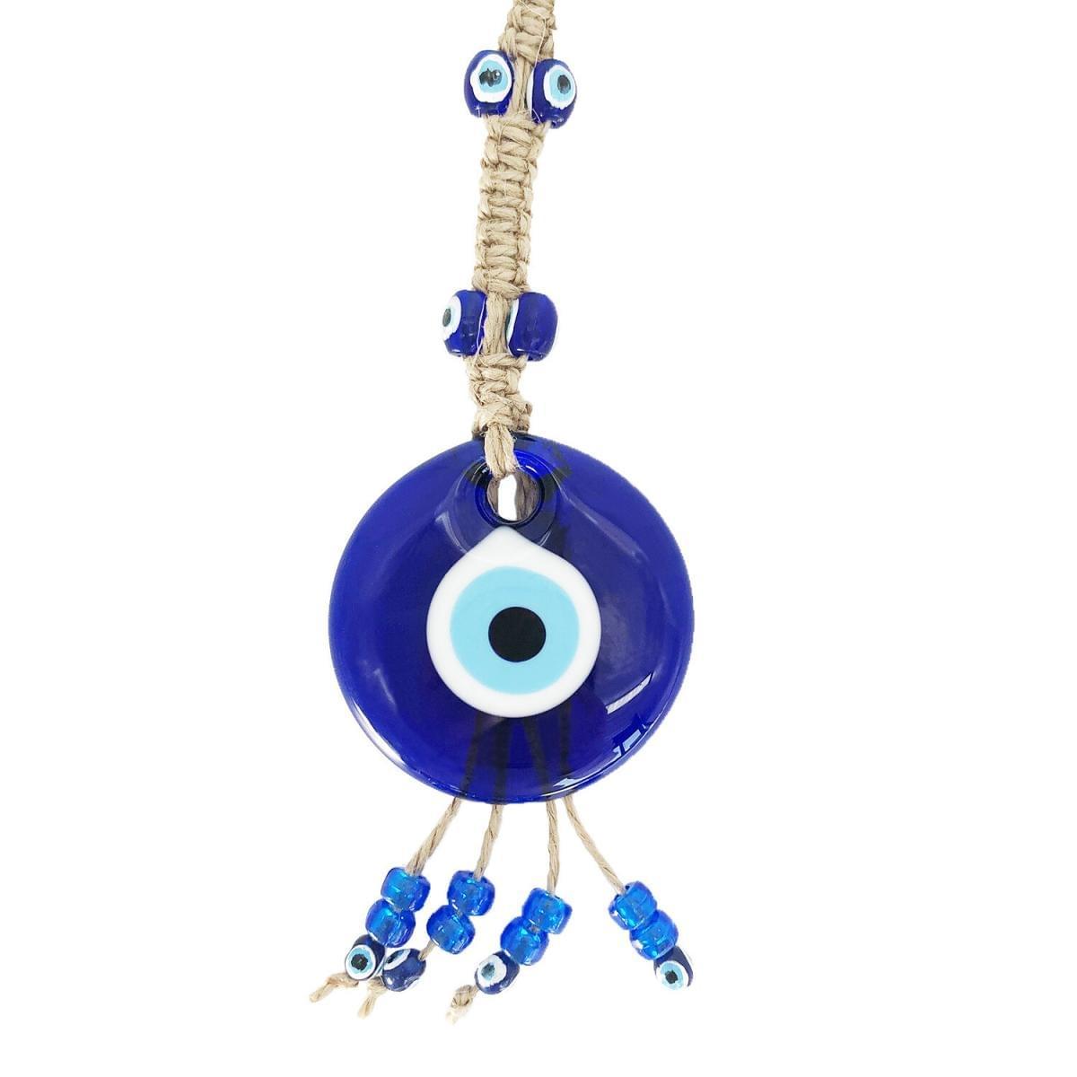 7X0.5X27厘米土耳其玻璃惡魔之眼掛牆吊飾,Evil Eye 邪眼 藍眼圖騰 邪惡的眼睛 魔眼 藍白相間 圓形眼晴 辟邪擋小人 亞麻線編織 時尚潮物(VTR-WALL-EVILEYE-0727)