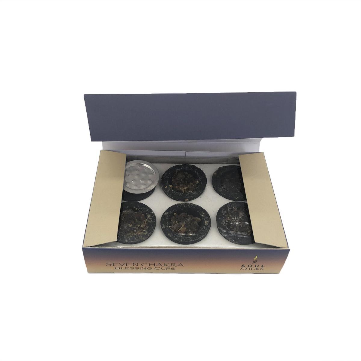 | 名稱 : DHUPA 七脈輪香薰杯 (DHUPA-CUP-SEVEN-CHAKRA) 尺寸 : ∅3.4cm x 2.3cm(高) 包裝 : 每盒內有六個香薰杯,附送一塊小鐵片香座 使用方法: (1) 從包裝盒中取出一個塗抹杯 (2) 使用火柴棒或蠟燭從側邊欄的任何頂部,打側杯子並燃點 5 到 10 秒,直到炭杯開始燃燒 (3) 當杯子開始燃燒時,將其放在通風良好的防火表面上的金屬或土製底座上 警告:請放在兒童接觸不到的地方。切勿讓炭杯無人看管。炭杯燃燒時會變得十分高溫,應使用耐熱手套或適當的工具處理。 |