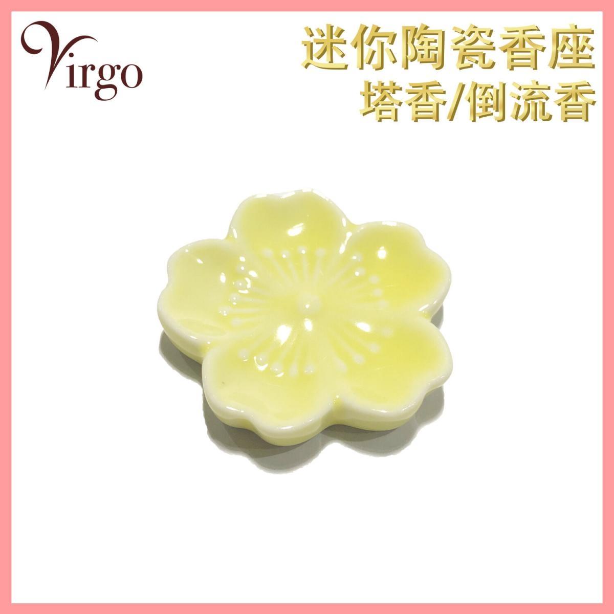黃色精緻手工製造圓錐香(塔香)陶瓷座